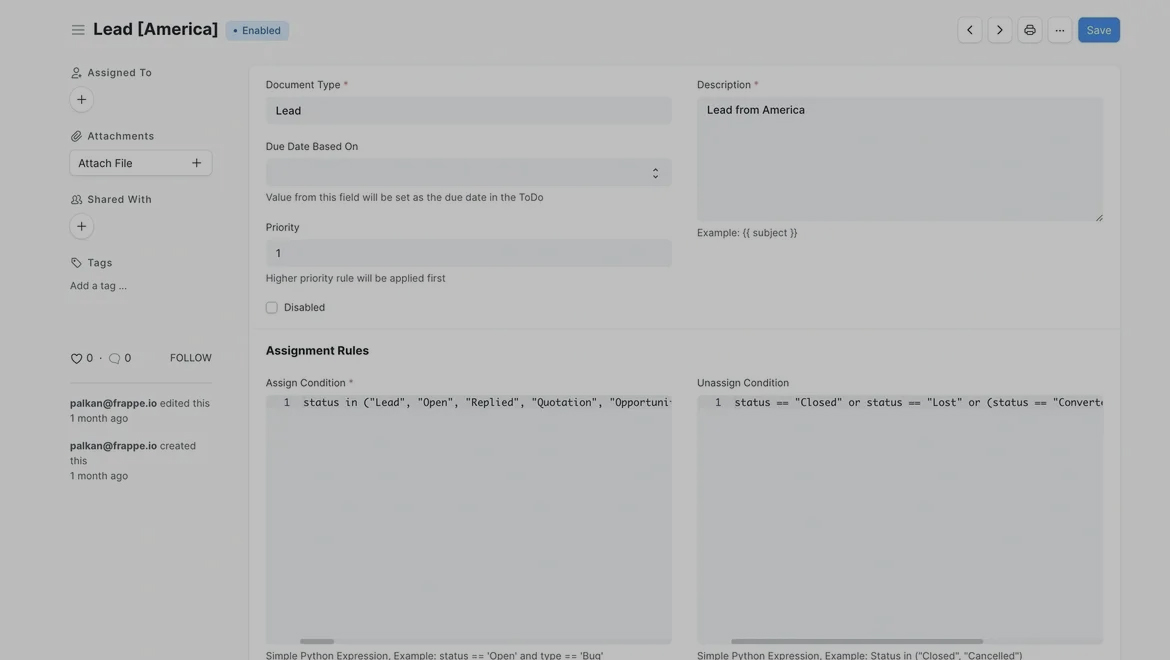 Reduce overhead of manual work by setting up assignment rules (such as round robin or load balancing) to automatically distribute leads among the team. This leaves more time to respond to customers, empowering your sales team to meet commitments on time.