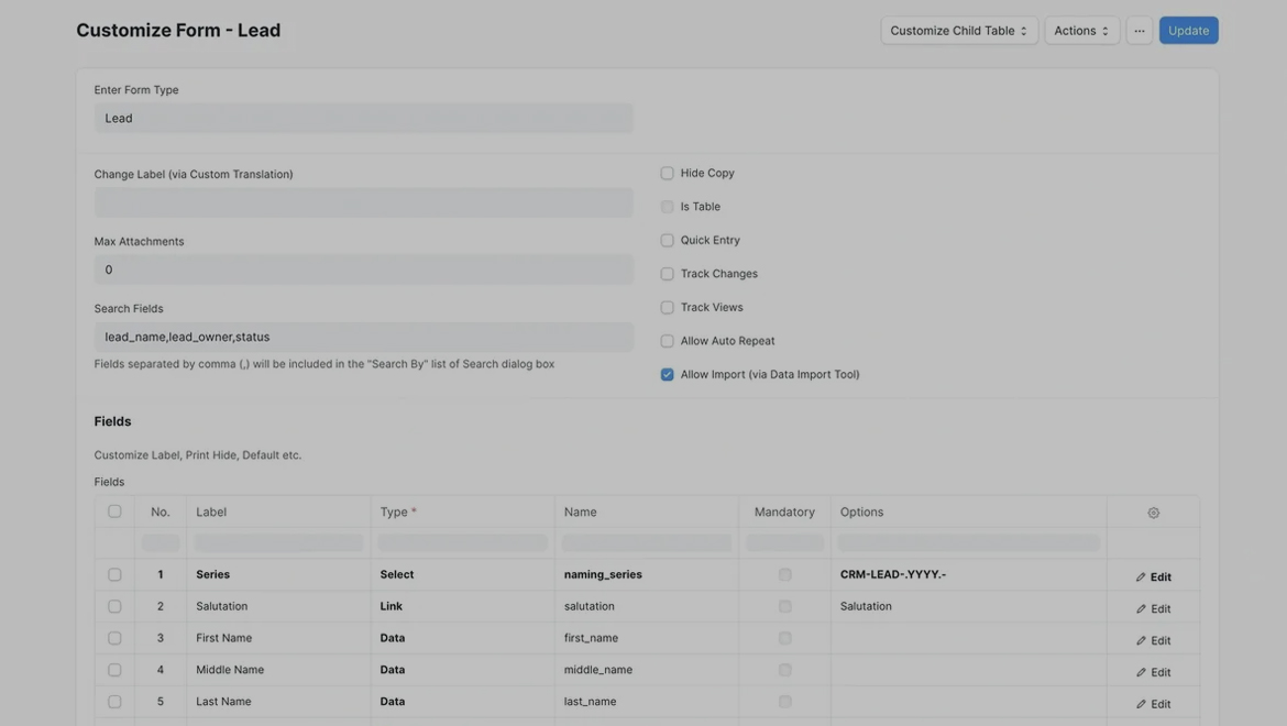 Create your own open source CRM software. Map your most important data by adding custom fields in your forms. Customize form behavior by auto-fetching values, hide fields based on user roles, and create custom print formats — all without a single line of code.