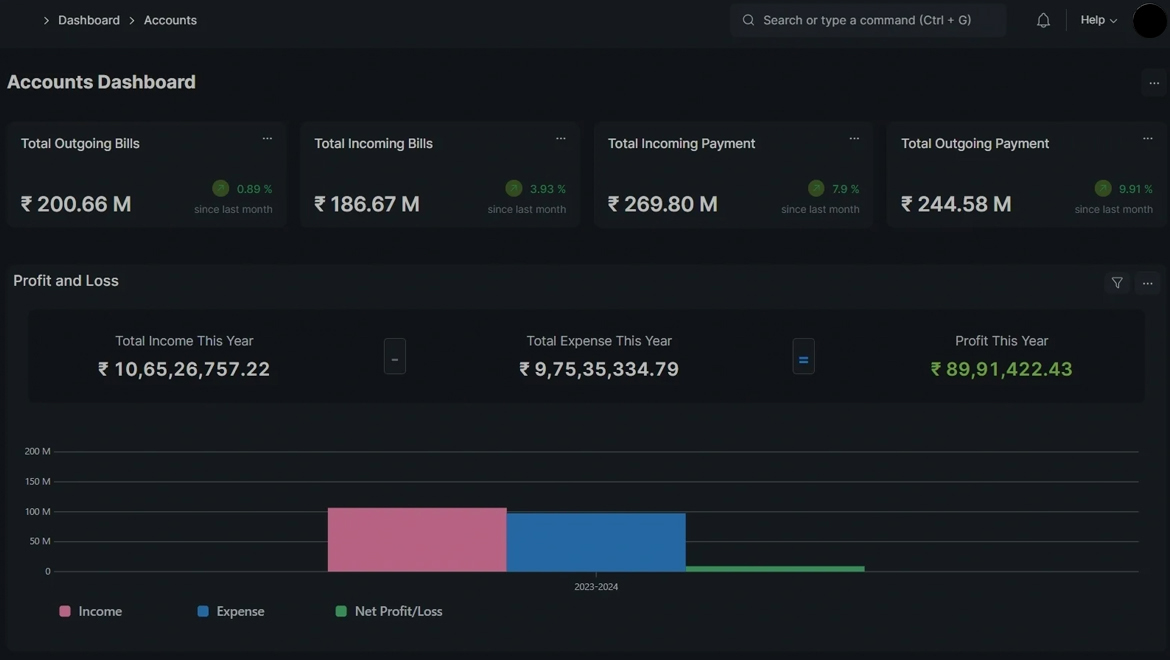 Open source accounting dashboards highlight all key performance indicators at a glance. With configurable accounting dimensions and customizable dashboards, it's finally possible to analyze every component of your business in one place.