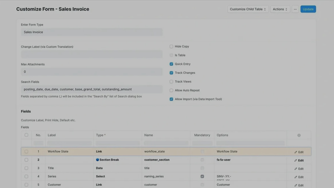 Create your own open source accounting software. Map the data you care about by adding custom fields in your forms. Then customize form behavior by auto-fetching values, hide fields based on user roles, and create custom print formats — all without a single line of code.