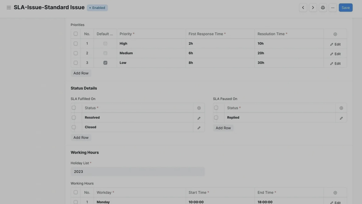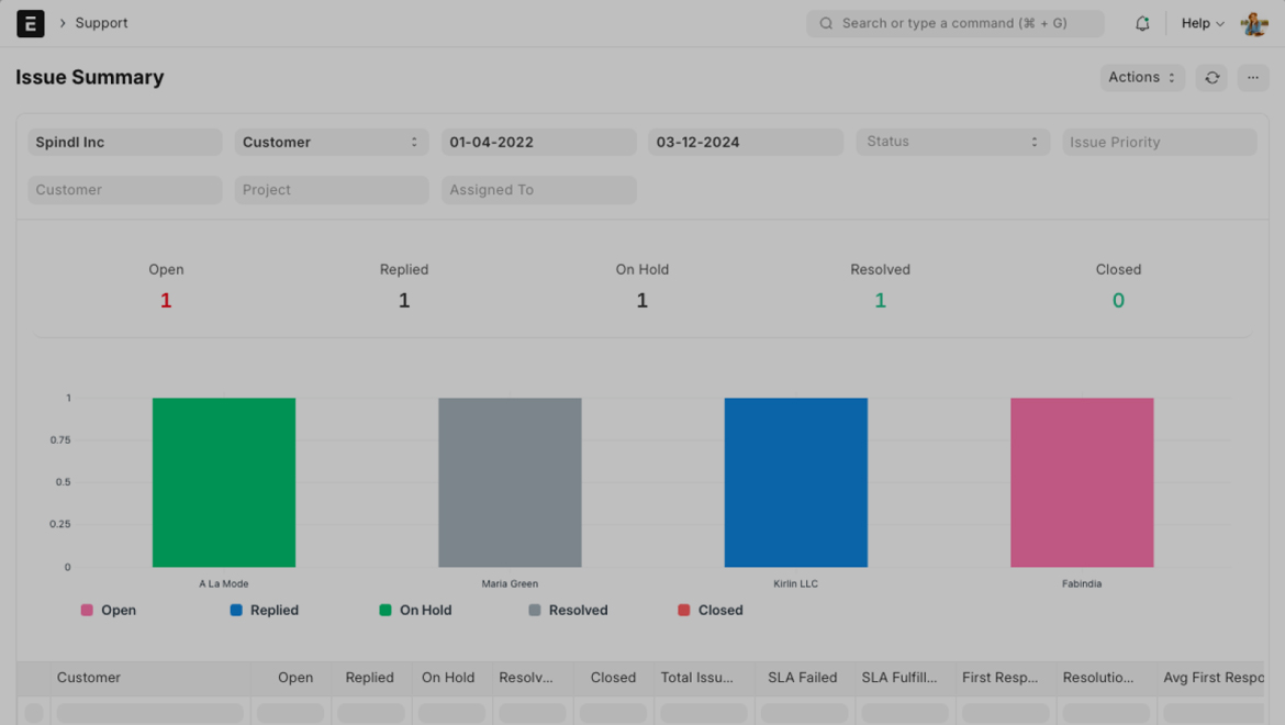 Collaborate to address support tickets with multiple assignments or mentions. ERPNext includes out-of-the-box reports to monitor the performance of your support team and analyze ticket traffic (including open and closed tickets).