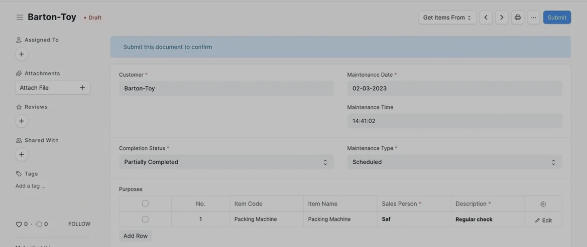 Using the Maintenance Schedule feature, you can avoid missing service maintenance visits. Log the employee and work done in each visit and capture customer feedback, all with a single click.
