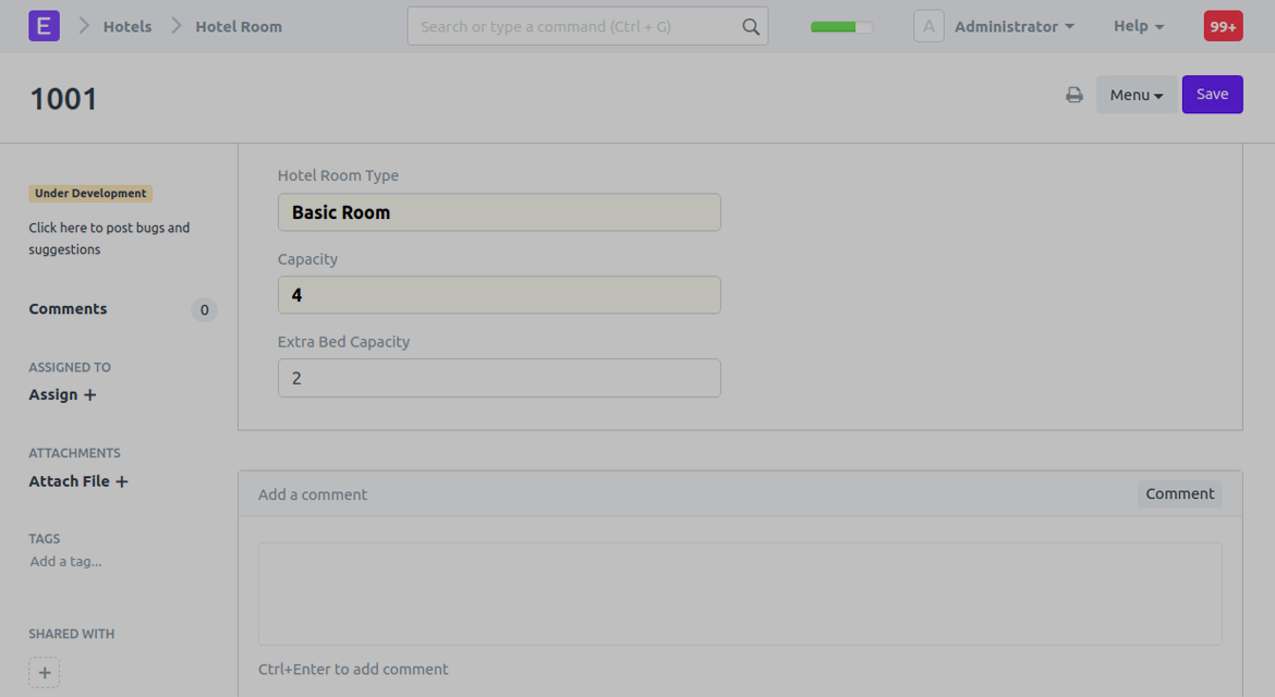 The Hotels module in ERPNext will help you manage creating Hotel Rooms, create Hotel Room Reservation. It will also help in creating Invoice from hotel room reservation