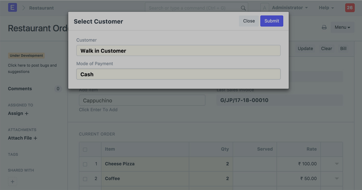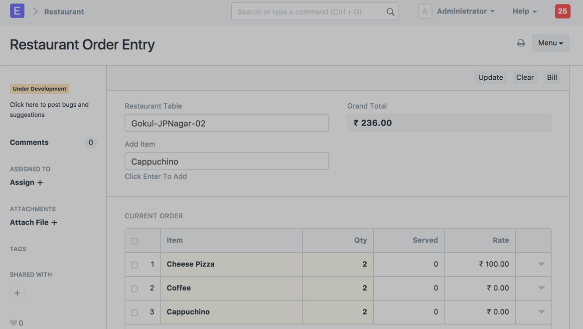 The Restaurant module in ERPNext will help you manage a chain of restaurants. You can create Restaurants, Menus, Tables, Reservations and a manage Order Entry and Billing.